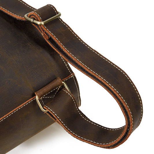 Vintage Handmade Top Layer Vegetable Tanned Cowhide Messenger Bag