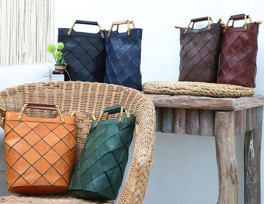 Vintage Handwoven Shoulder Bag With Vegetable Tanned Top Layer Cowhide