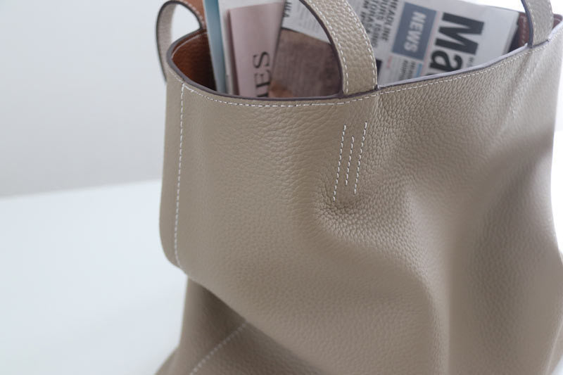 This bag is made of pure cowhide with a buttery smooth handling style. It comes in shades of brown-gray, gray-blue, and granny smith green, giving it a super squishy feel. With its vertical square form and authentic cow leather material, it is the perfect choice for fashion lovers seeking a high-quality and stylish bag.