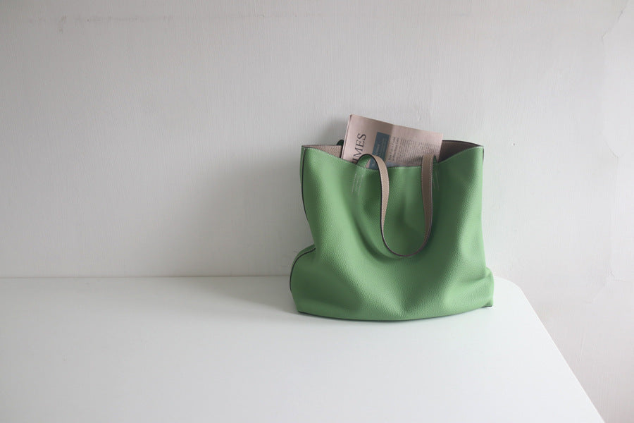 Double-sided Head Layer Cowhide Large Capacity Women's Bag