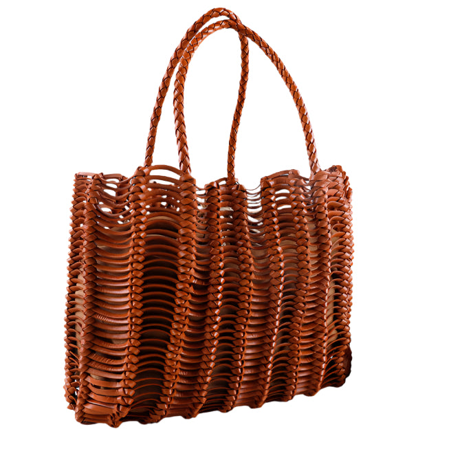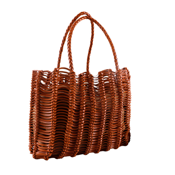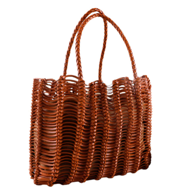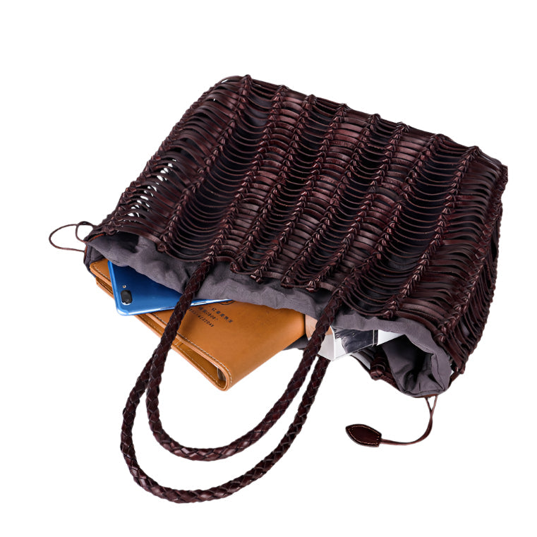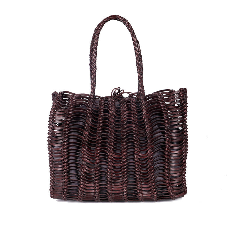 Retro Style Cowhide Handmade Hollow Woven Handbag Female Leather Handbag